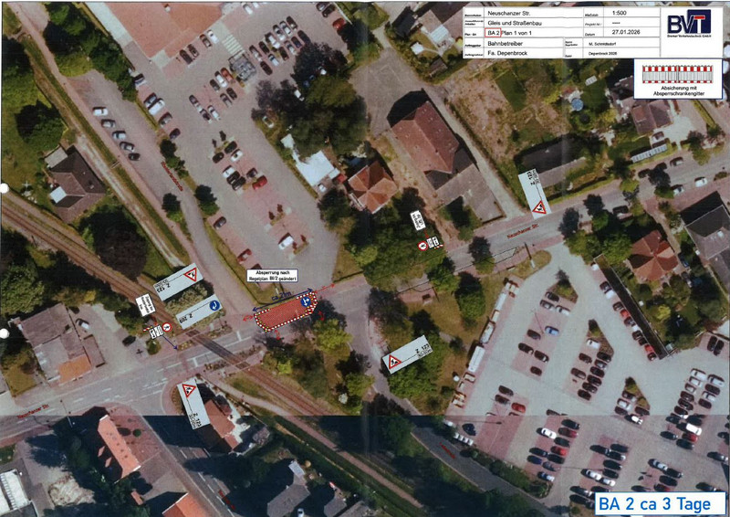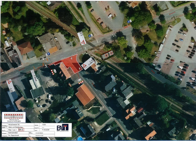 Aufgrund eines fehlerhaften Pressestatements der Deutschen Bahn gegenüber der Rheiderland-Zeitung, in dem eine unzutreffende Sperrung der Neuschanzer Straße ab dem 27.04.2026 angekündigt wurde, fand kurzfristig ein Abstimmungsgespräch mit allen Beteiligten statt. Dabei wurde der Bauzeitenplan nochmals überprüft und entsprechend angepasst.